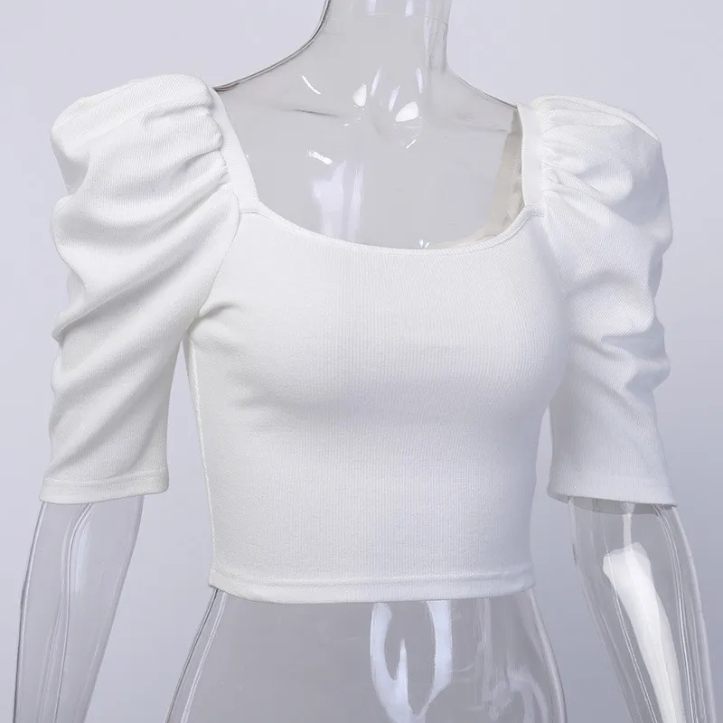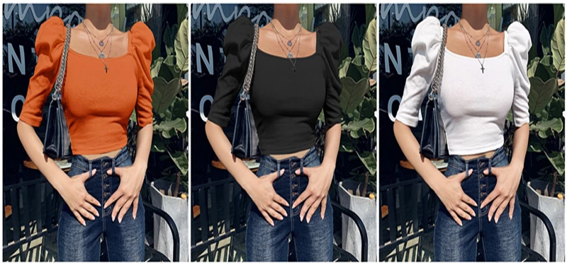 Отзывы о Укороченная женская рубашка CNYISHE с пышными рукавами укороченный топ