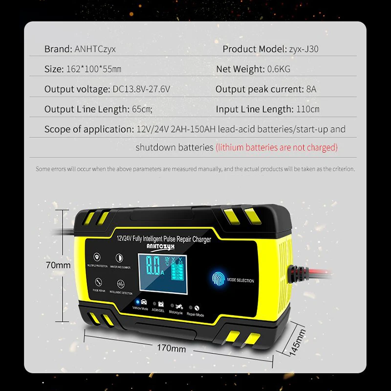 4. Зарядные устройства подходят для большинства типов батарей, включая кальций, гель и AGM, влажные батареи. Они также могут помочь восстановить сливные и сульфированные батареи.