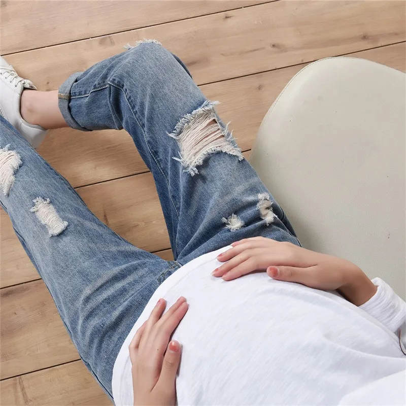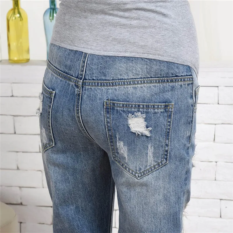 Для женщин Материнские джинсы с эластичной резинкой на талии, рваные стрейч деним животы беременных джинсы на осень, весну, штаны Беременность узкие брюки