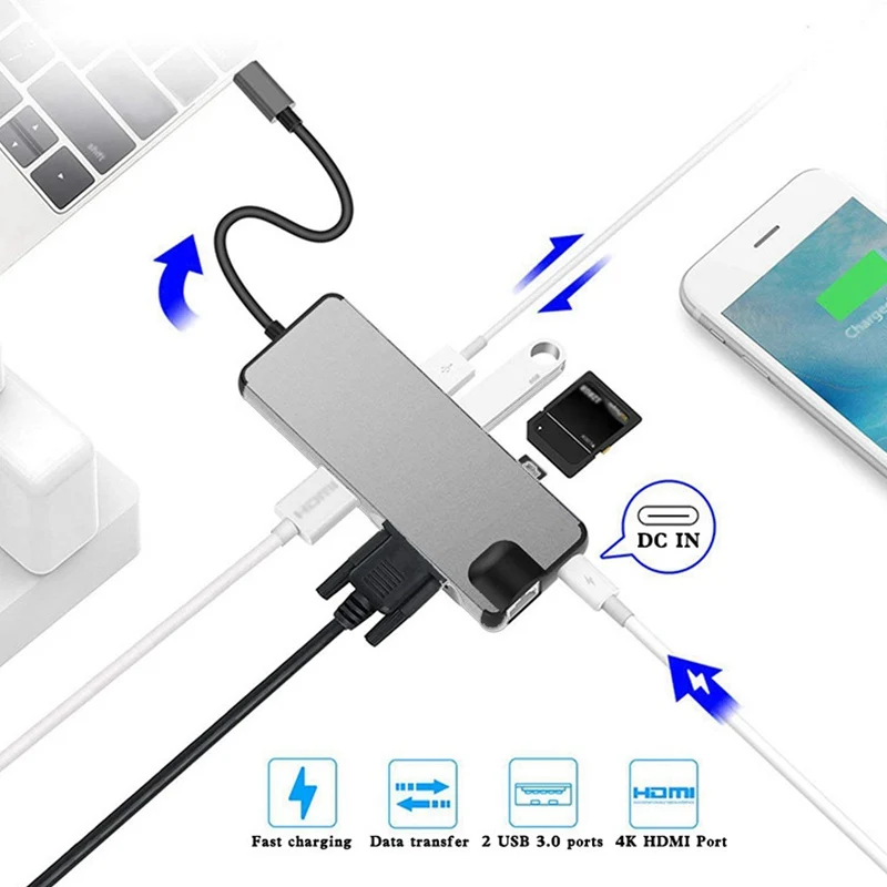 Отзывы о Док станция 3 0 usb хаб type C к HDMI 4K VGA PD RJ45 Gigabit LAN SD/TF карта концентратор адаптер для