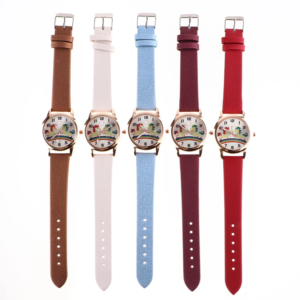 Отзывы о Детские часы повседневные кожаные Наручные Мультяшные студенческие радужные