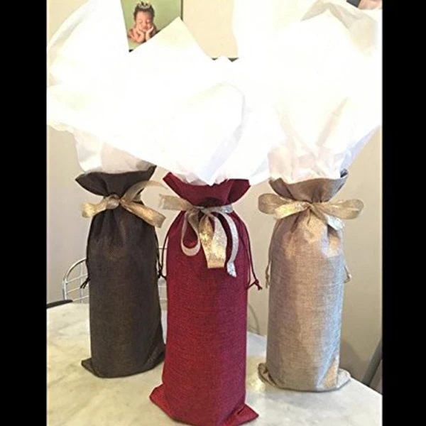 Материал: Эти мешочки для вина из мешковины изготовлены из льна + нейлона.