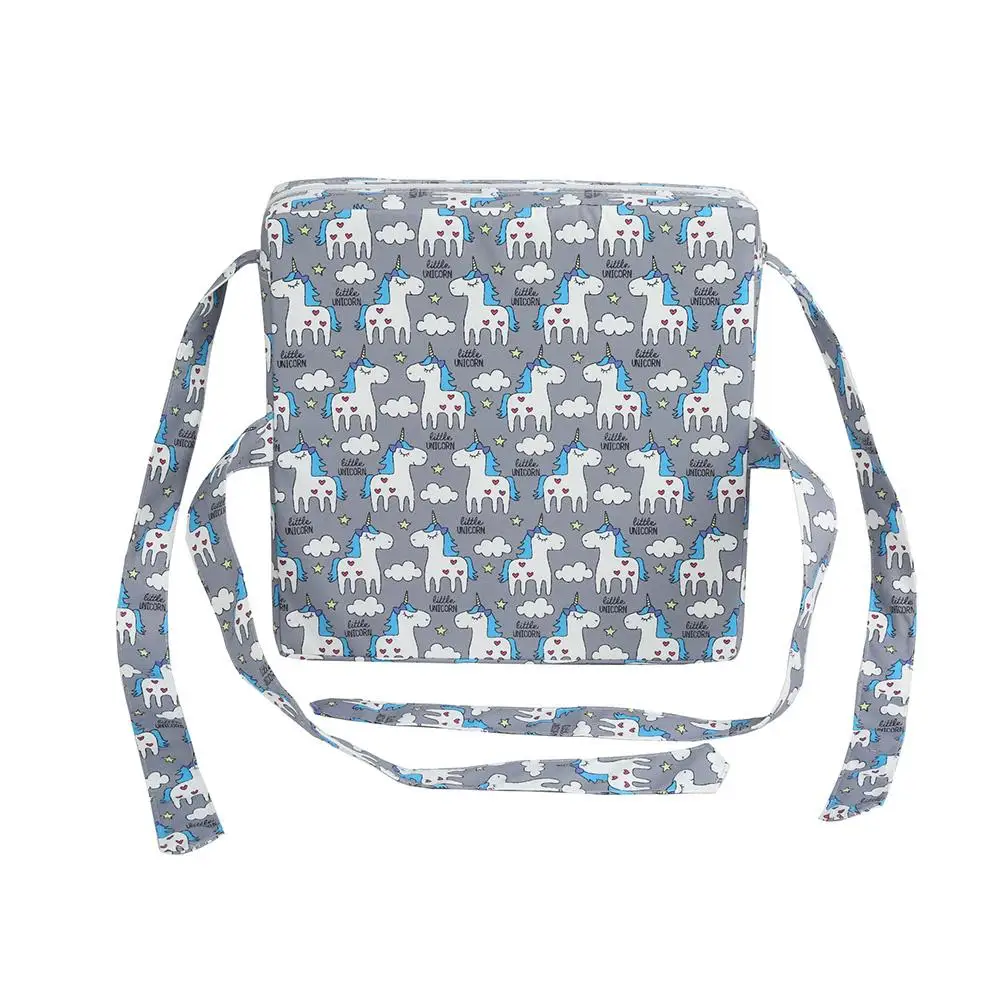 Подушка для сидения изготовлена из тонкой льняной ткани, которая является прочной и моющейся и имеет нежное ощущение. Внутреннее ядро-это белая губка высокой плотности, которая является экологически чистой и прочной и не рухнет во время длительного использования. Широкий ремешок обеспечивает удобство и безопасность стула. Это может решить проблемы детского питания, не достаточно высоких стульев при обучении и холодных стульев.