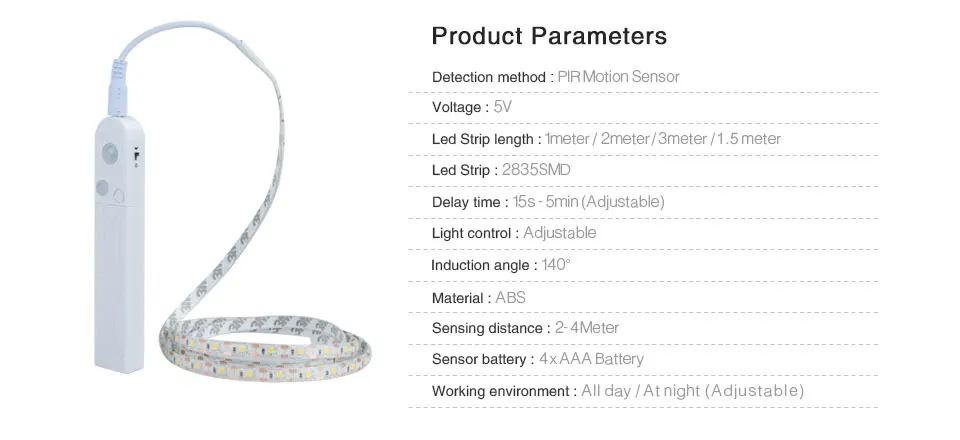 Описание продукта: Захват движения человека + Интеллектуальный светильник системы управления. Когда вы вылезаете из кровати ночью, будет автоматически ligt. Возвращайся в кровать, светильник гаснет. Особенности Батарея для источника питания Это нужно 4 AAA батареи (не включая батарею), не нужно адаптер. * Реагирует на ваши потребности Вставать в ночное время становится легким с светильник предназначен для включения и выключения в тех случаях, когда вам это нужно. * Настройка Esay никаких инструментов не требуется Устанавливается за несколько минут с помощью нескольких простых шагов. Готов для крепления с двойной клейкой ленты. * Ощущение безопасности ночью Когда ваша нога касается пола, комната мягко освещается, чтобы вести вас осторожно и безопасно по комнате. * Длительный срок службы Светодиодный индикатор длится 2 года на основе средней активации 1 часа в день. * Продуманный освещения Теплый мягкий светильник, где он вам нужен, когда он вам нужен, без дистующих бликов, чтобы разбудить других и не пыхтеть, чтобы найти светильник в темноте. Технические характеристики: 1. Установите батареи, выберите человека, входящего в ручной режим, ВКЛ/ВЫКЛ Выбор переключателя. 2. Ручной режим переключается на автоматический, светильник включен, когда вход в область датчика и держать 30 секунд. 3. Если вы все время остаетесь в сенсорной зоне, светильник будет держать 30 секунд после того, как вы уедете. * Номинальное напряжение: 5 В постоянного тока