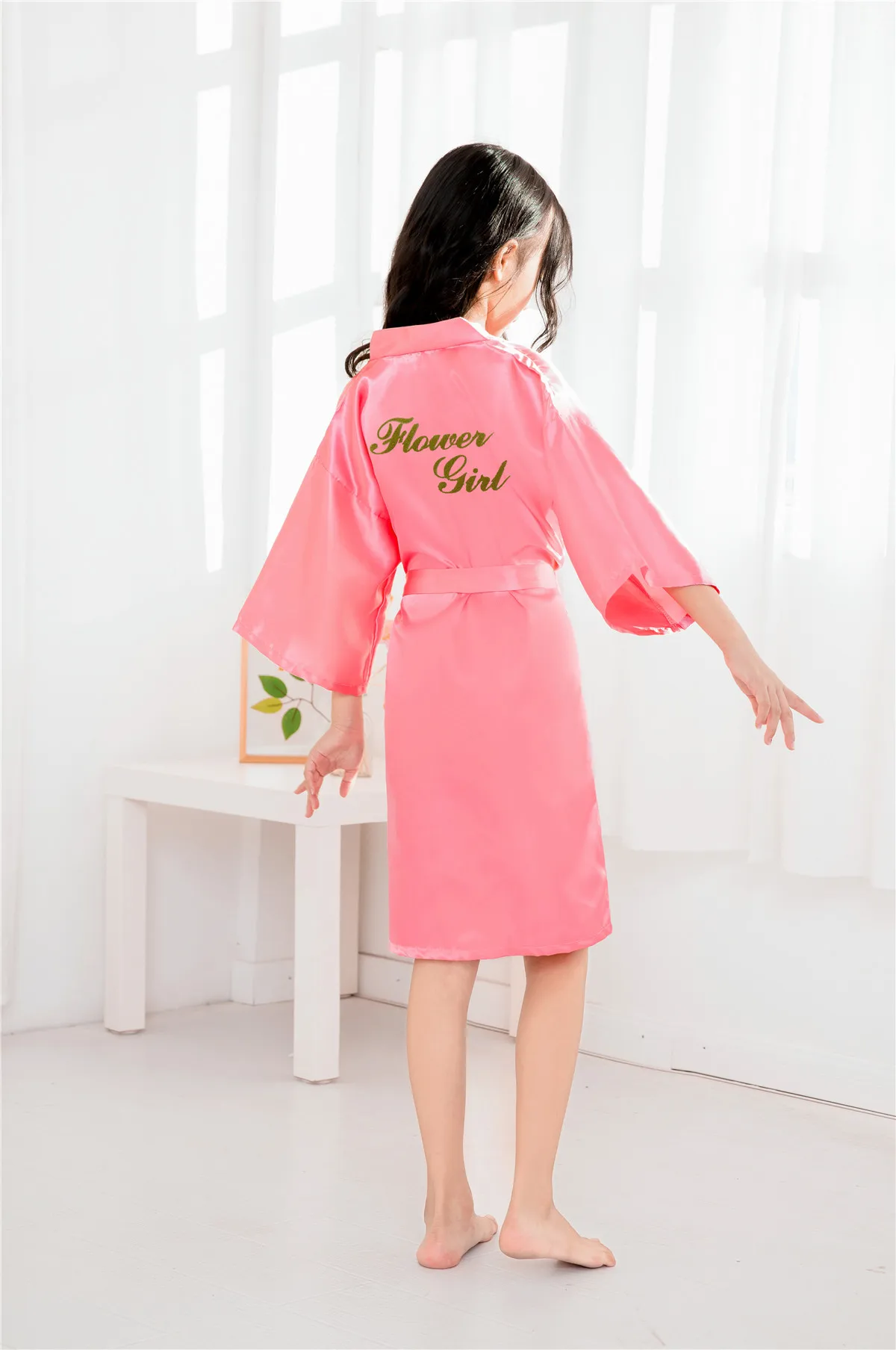 Отзывы о Халат-кимоно детский атласный однотонный с надписью Шелковый банный халат для