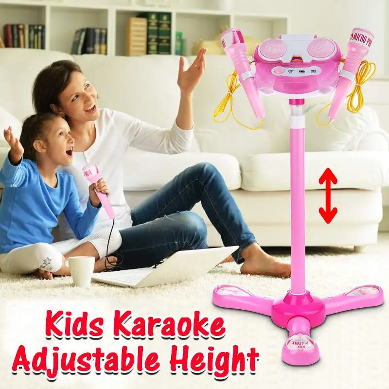 Отзывы о Караоке машина набор 2 микрофона музыкальная игрушка Регулируемая подставка для