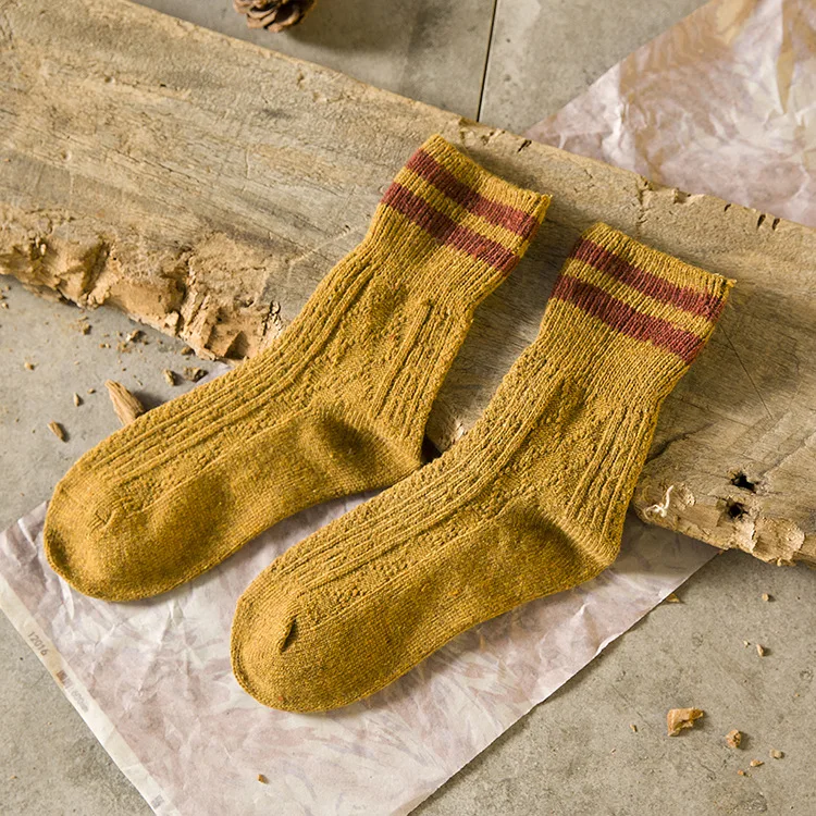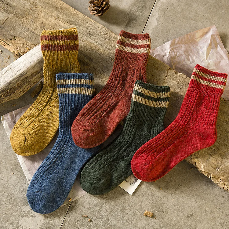 Отзывы о Носки женские осенние и зимние хлопковые носки Ретро полосатые ворсовые
