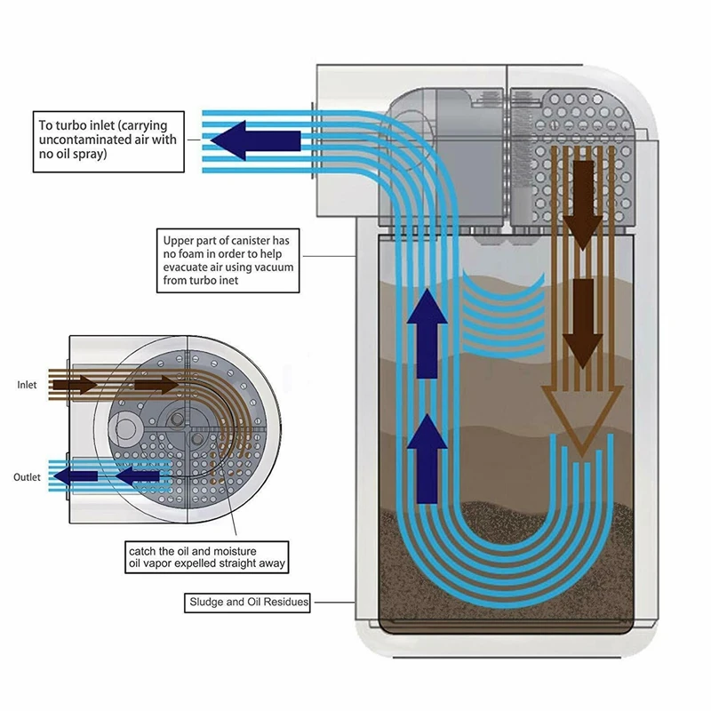 В банке есть дефлекторная система внутри, чтобы лучше поймать масло, вы также можете добавить немного шерсти из нержавеющей стали в фильтр, чтобы поймать больше масла.