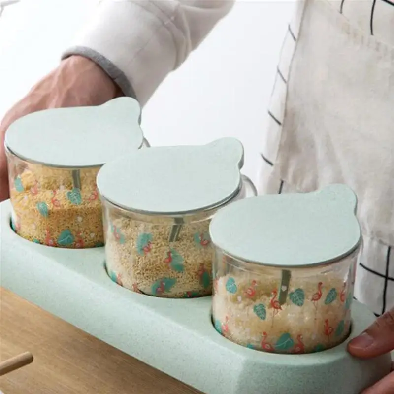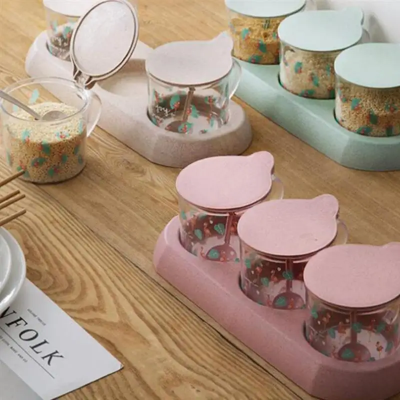 - 3 jars with spoon, convenient to storage different condiments and prevent mix of seasonings.