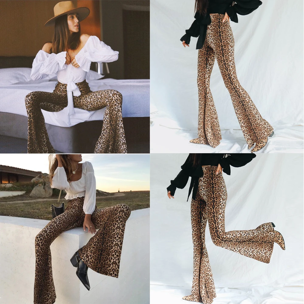 Отзывы о Модные женские длинные брюки с высокой талией в стиле леопарда широкие OL
