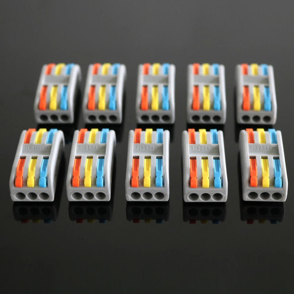 Название продукта: 3 полюса на 3 полюса Универсальный соединитель проводаМодель: PT-3-3Номинальное напряжение: 400 ВНоминальное импульсное напряжение: 4КВМатериал изоляции: модифицированный нейлон (PA66)Материал контакта: Фосфорная медьСечение провода: 0,08 ~ 2.5mm2 (один жесткий провод), 0,08 ~ 4mm2 (мульти мягкий провод)Цвет: серый + оранжевыйНоминальный ток: 32AНоминальная мощность: 7 кВтКалибр: 28 ~ 12awgУпаковка:10 шт. x PT-3-3 коннектор