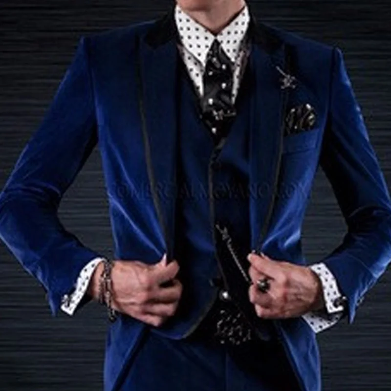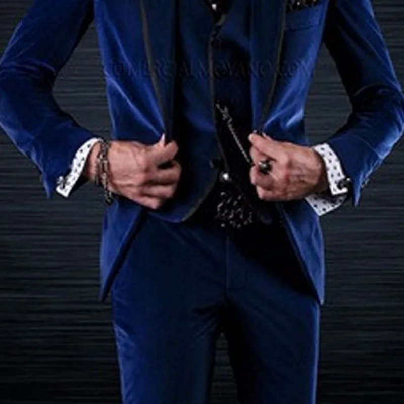 Отзывы о Бархатные смокинг для жениха Королевского синего цвета свадебная одежда 3
