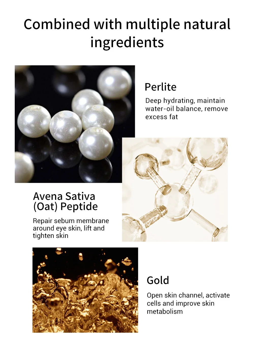 Containing essence of black pearl, nourishing eye skin, reducing puffiness, tightening eye skin, removing eye bags