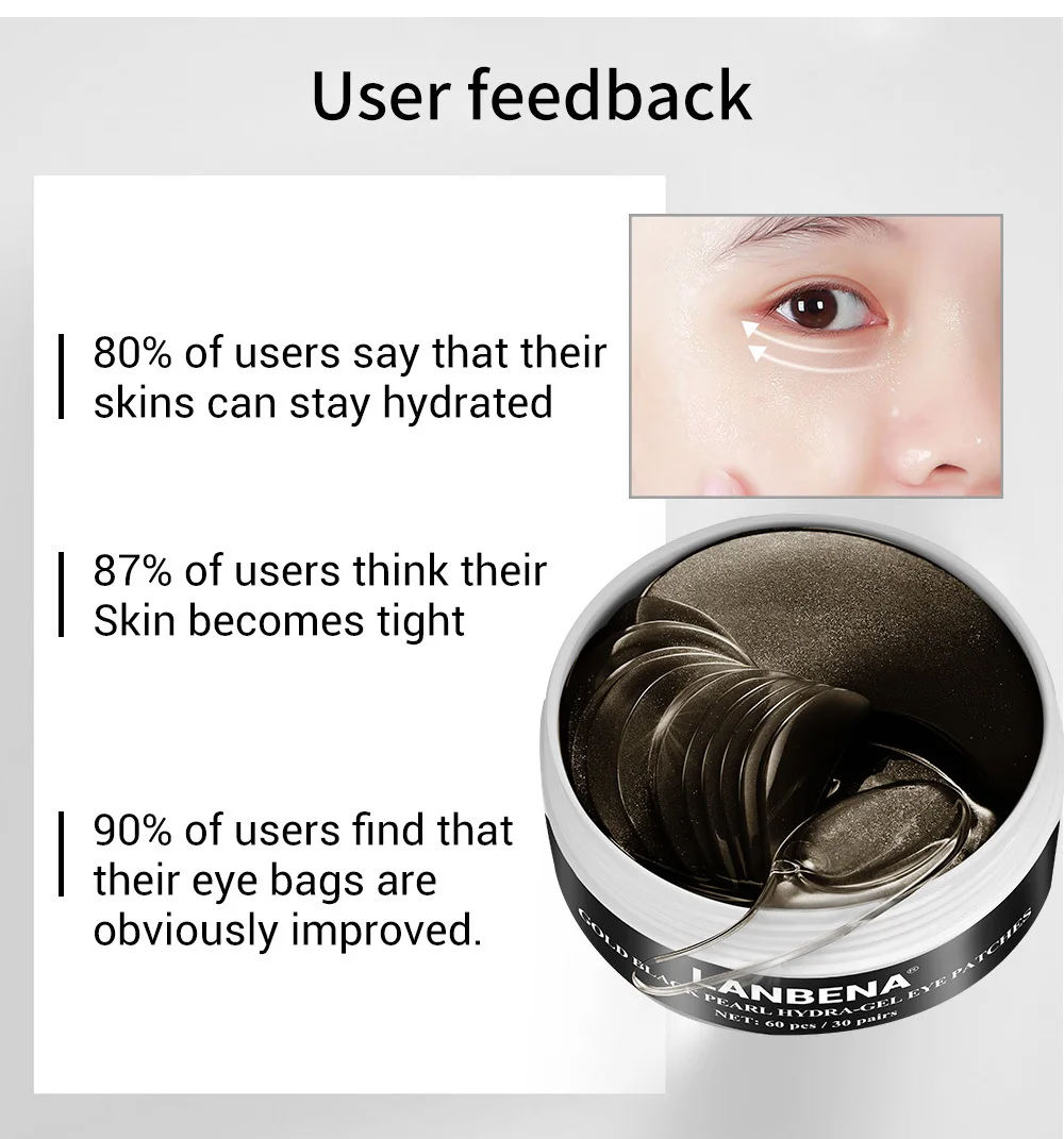 Отзывы о LANBENA Face Mask Gold Black Pearl Collagen Eye Patch Gel Care Repairing Wrinkle Lighten Skin Erase Bag 60pcs | Красота и здоровье
