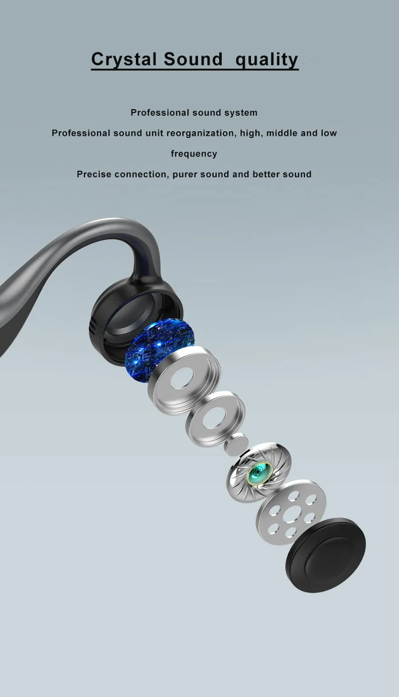 Технология Bone c используется для передачи звука, близкого к костям уха, и звуковые волны непосредственно проходят через кости к слуховому нерву, принося высококачественную музыку