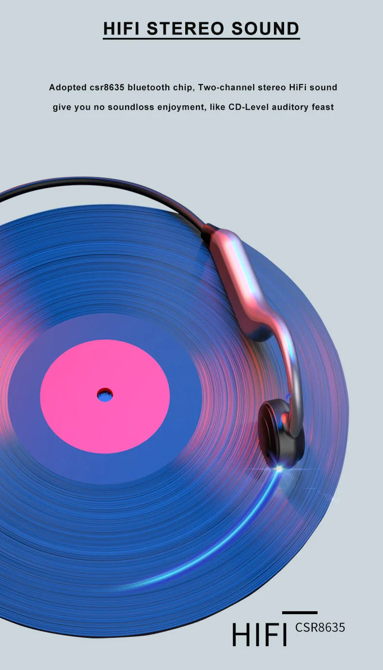 Костная проводимость гарнитуры хорошо benifit через кость для передачи звука, не в ухо или над ухом дизайн, это может помочь вам слушать другой голос одновременно. Вы можете послушать muisc и пообщаться с вашим другом. Одно и то же время