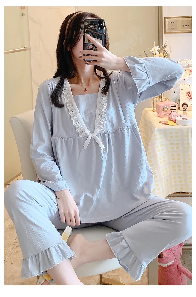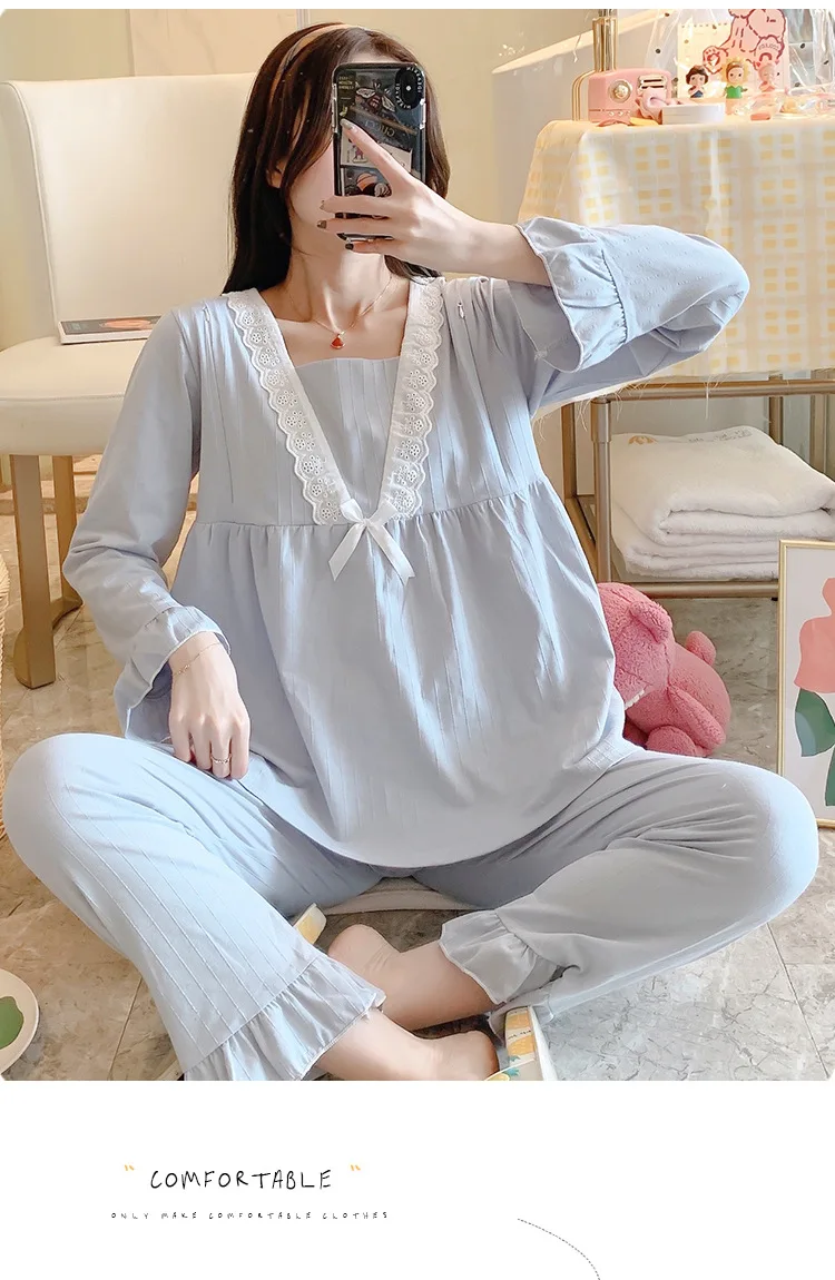 Отзывы о Корейская модная Пижама для беременных одежда сна на осень и зиму Одежда нижнее