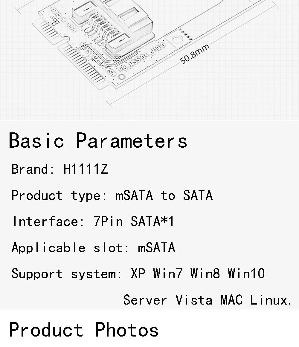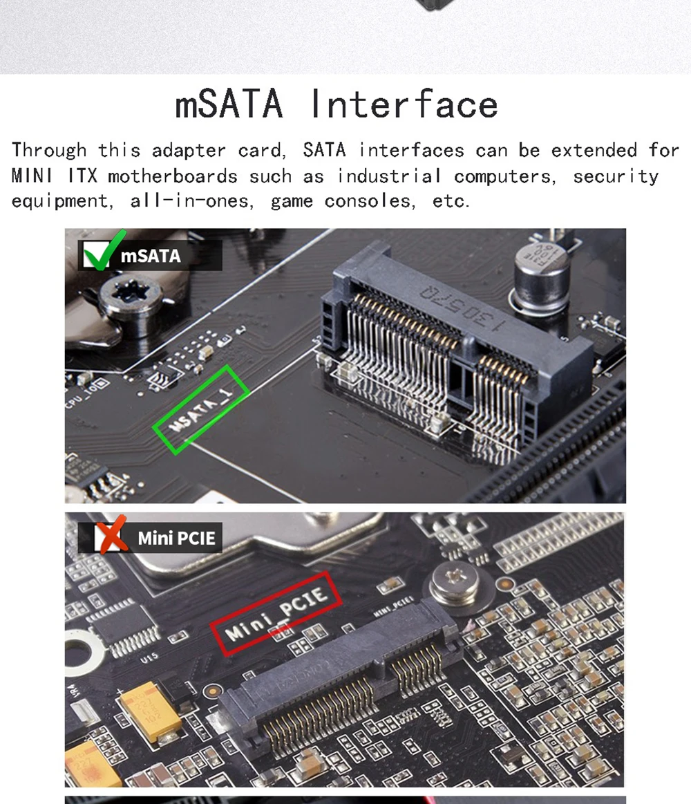 1. Эта карта адаптера может быть использована в любом SATA оборудование передачи в карточка mSATA слоты.(7pin для кабеля передачи данных, ned другой SATA линии питания).