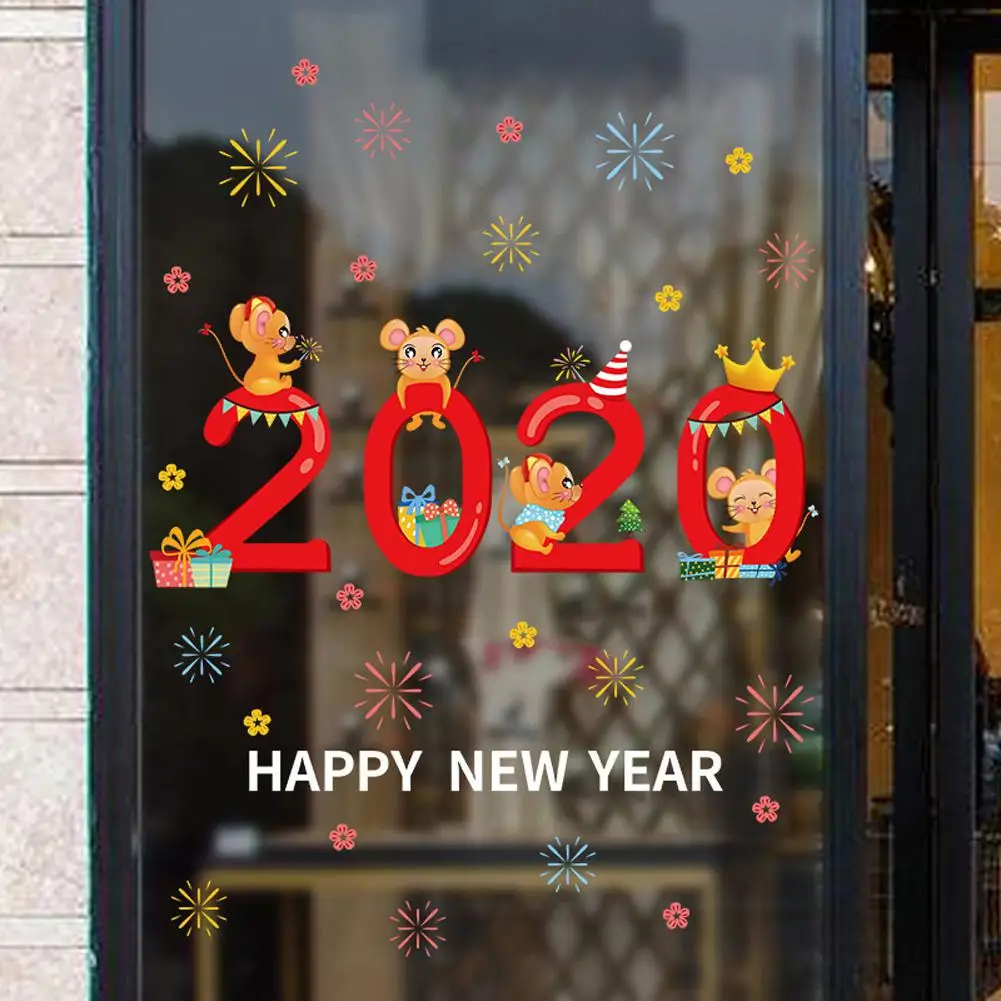 Отзывы о 2020 Happy New Year Rat Mouse Fortune Wall Sticker Door Stickers Decal Home Decor Picture Self Adhesive Waterproof Wallpaper | Дом и сад