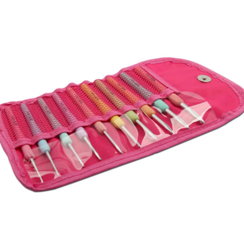 2017 новое поступление 10 шт Размеры 2,0 мм-6,0 мм новые красочные TPR Мягкие Ручки Алюминиевые крючки для вязания спиц набор