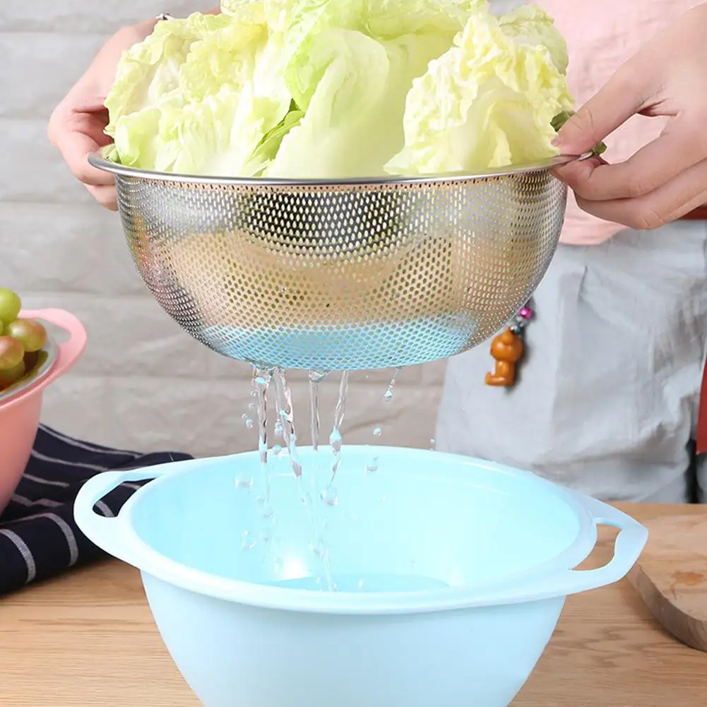 3. Набор сливной корзины не только подходит для очистки фруктов и овощей на кухне, также может использоваться для хранения фруктов, что является многоцелевой корзиной.