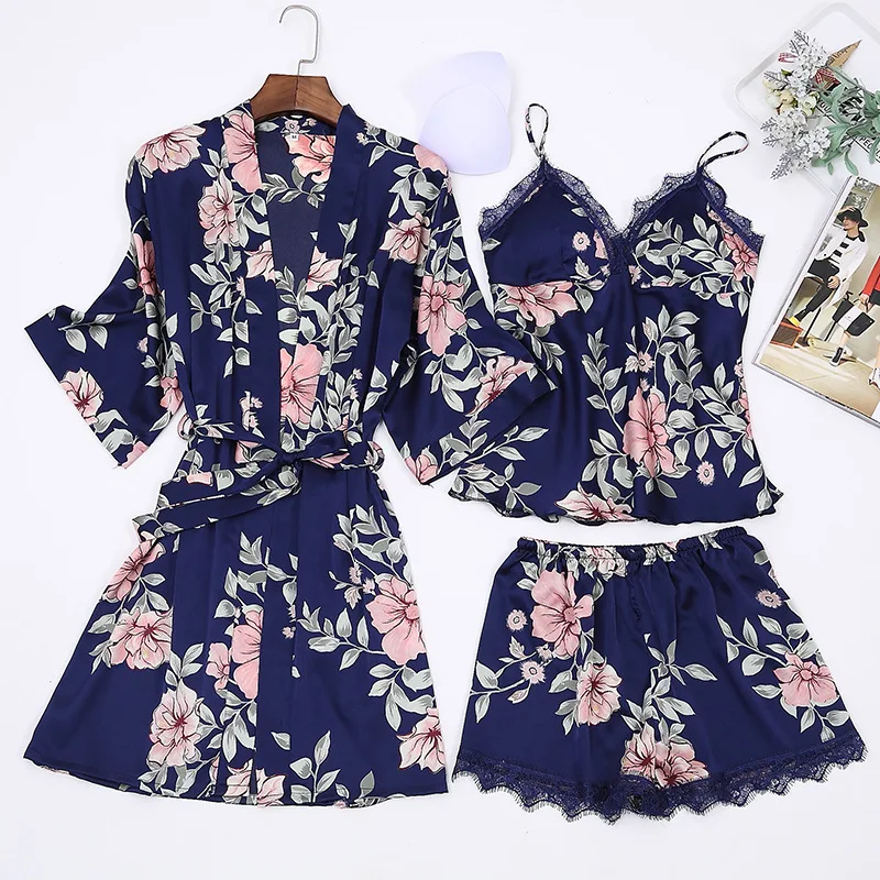 Отзывы о Халат с принтом пижамный комплект халат v-образным вырезом атласная Ночная