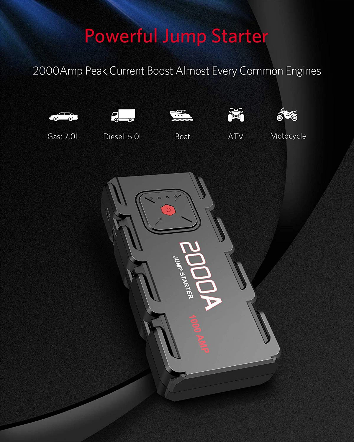 2000A пик лучший Пусковое устройство для стартера с светодиодный фонарик и умный Батарея зажимы для автомобиля 12V & лодка для всех газа или 8.0L дизельного топлива