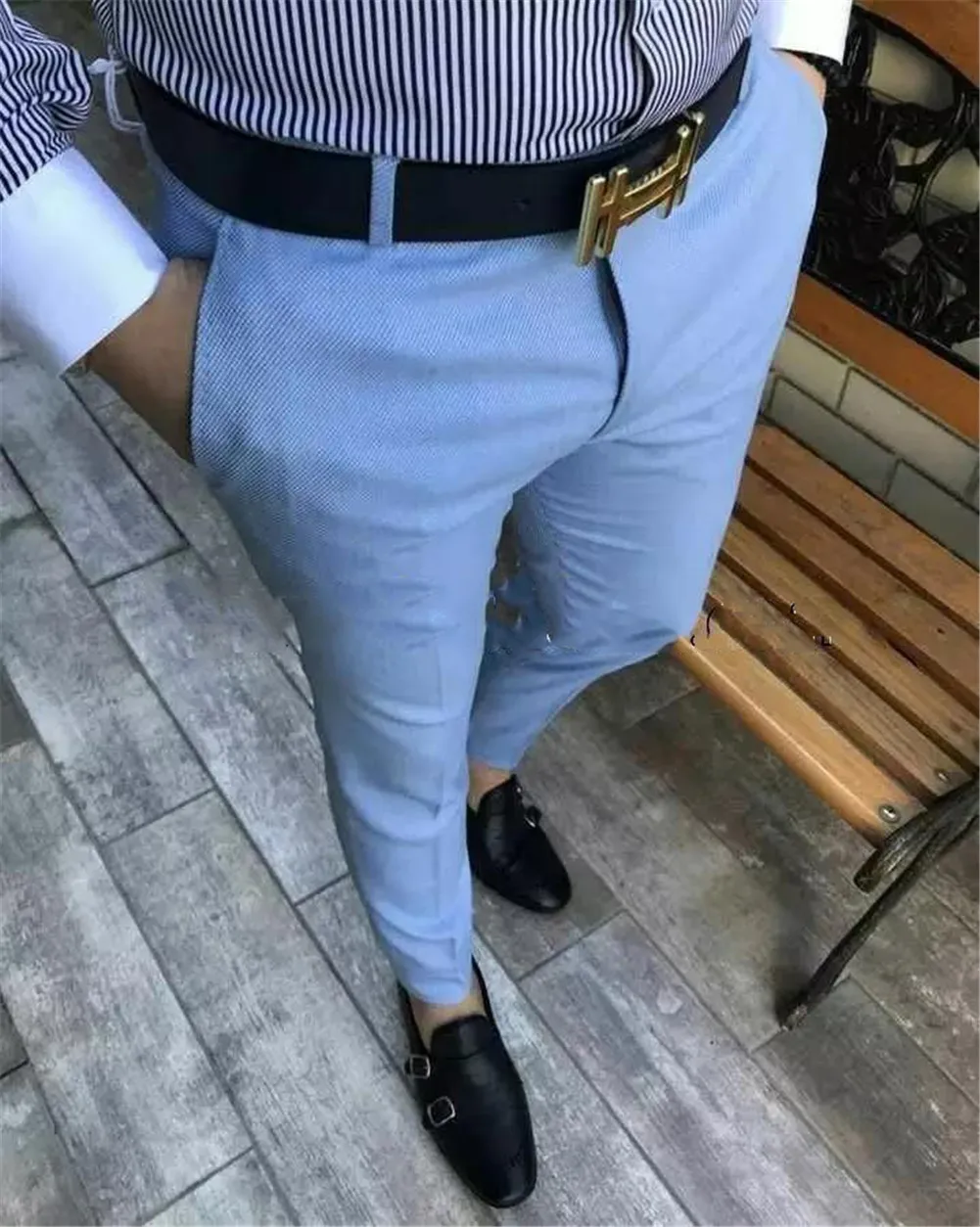 Отзывы о Мужские синие повседневные приталенные брюки уличная мода пляжные мужские