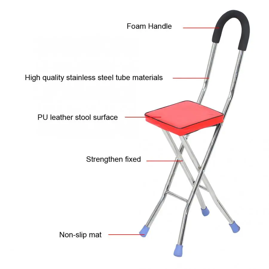 Отзывы о 2in1 складной трость Нержавеющая сталь стул костыль в четырех ногах для