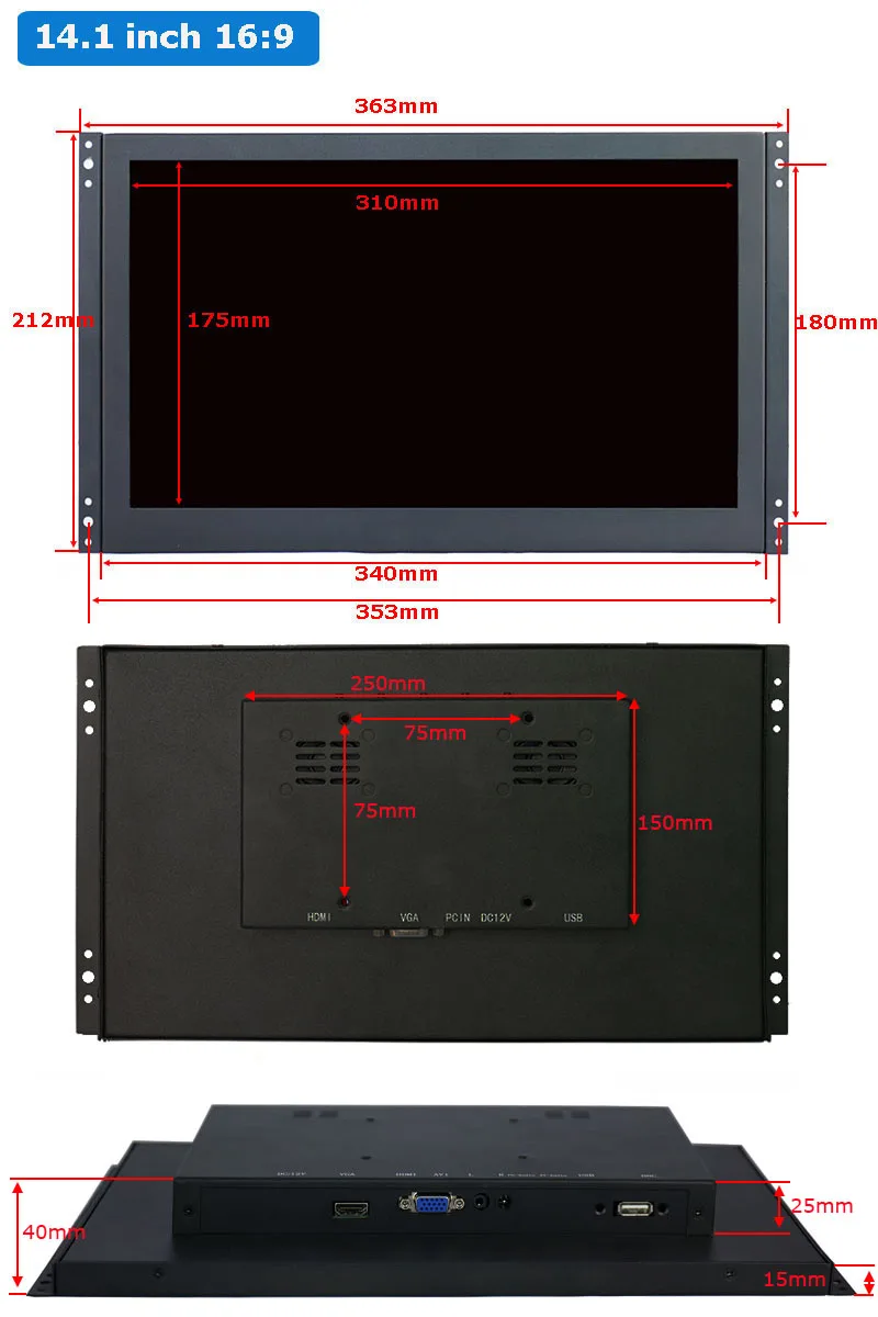 ZHIXIANDA Высокое качество Настольный настенный 1920*1080 IPS 14,1 дюймов открытая рамка TFT LCD емкостной сенсорный монитор