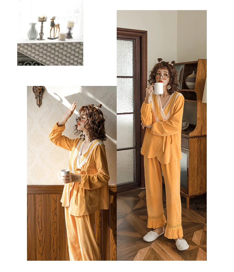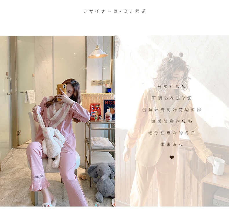 Весенние женские пижамный комплект; Сезон осень; Одежда для беременных; Костюм теплая Пижама для кормления, утолщенный теплый халат из фланели для беременных, одежда для сна, M-XL