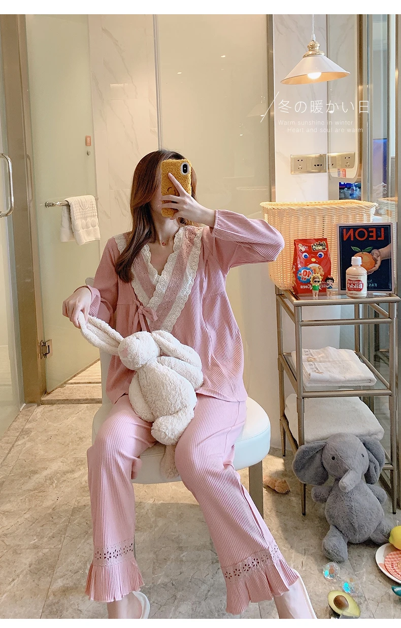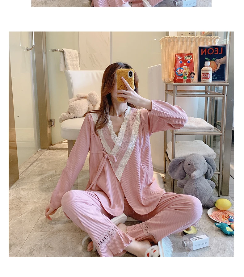 Отзывы о Весенняя Хлопковая пижама для беременных и кормящих грудью Топ + штаны пижамный