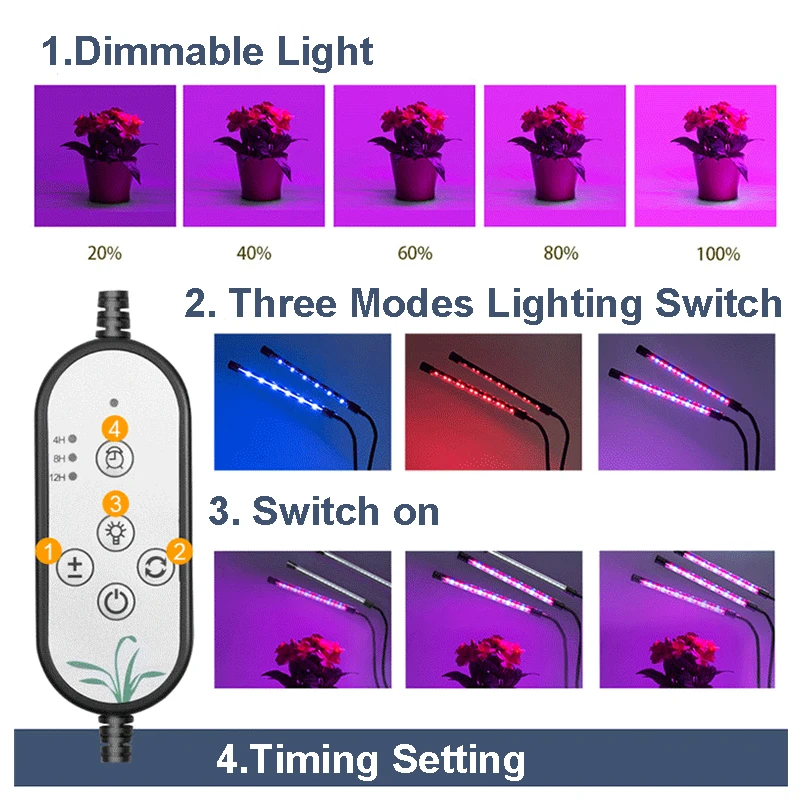 Название: светодиодный светильник для выращивания Материал: алюминий и ПВХ Мощность: 9 Вт 15 Вт 18 Вт 27 Вт 30 Вт 45 Вт Входное напряжение: 5 В Рабочая температура:-20 ° ~ 40 ° Срок службы: 50000 часов Диапазон освещения: 2-3 квадратных метра Посылка: 1 шт. DC5V светодиодный светильник (без адаптера) Особенности: 1. 3 режима таймера-4 часа, 8 часов и 12 часов; 5 режимов яркости затемнения; 3 варианта выбора количества освещения и красный/синий-переключатель. 2. Изготовлен из алюминия и ПВХ, легкий и прочный с хорошей теплоотдачей. 3. Низкое потребление и экологичность. 4. Гибкие ручки на 360 ° позволяют регулировать любое направление или область освещения. 5. С регулируемым зажимом, который максимум до 2,5 дюймов для вас, чтобы закрепить его на большинстве мест стабильно. Синий светильник влияет на образование хлорофилла, позволяя растению потреблять больше энергии. Растения, которые получают синий светильник, растут с крепкими, здоровыми стеблями и листьями. Этот процесс называется photomorphogenesis. Красный светильник способствует оптимальному развитию. Это важно для ранней жизни растения для прорастания семян, роста корней и развития луковиц. Это также делает Урожай растения лучше результатов при цветении.