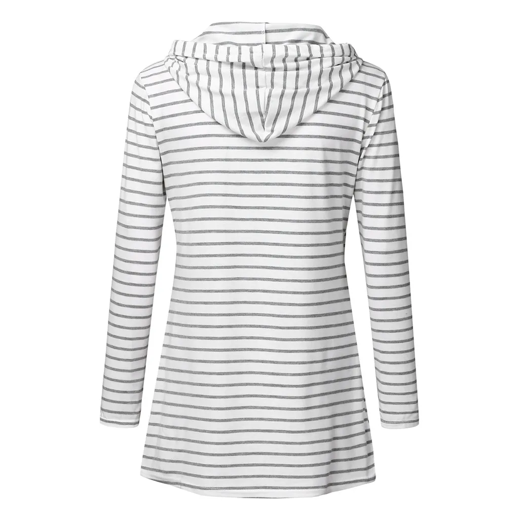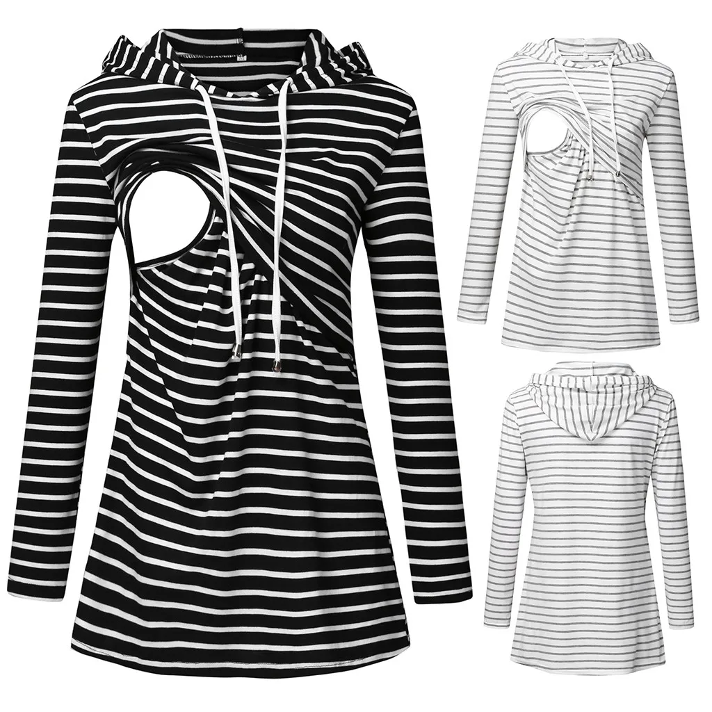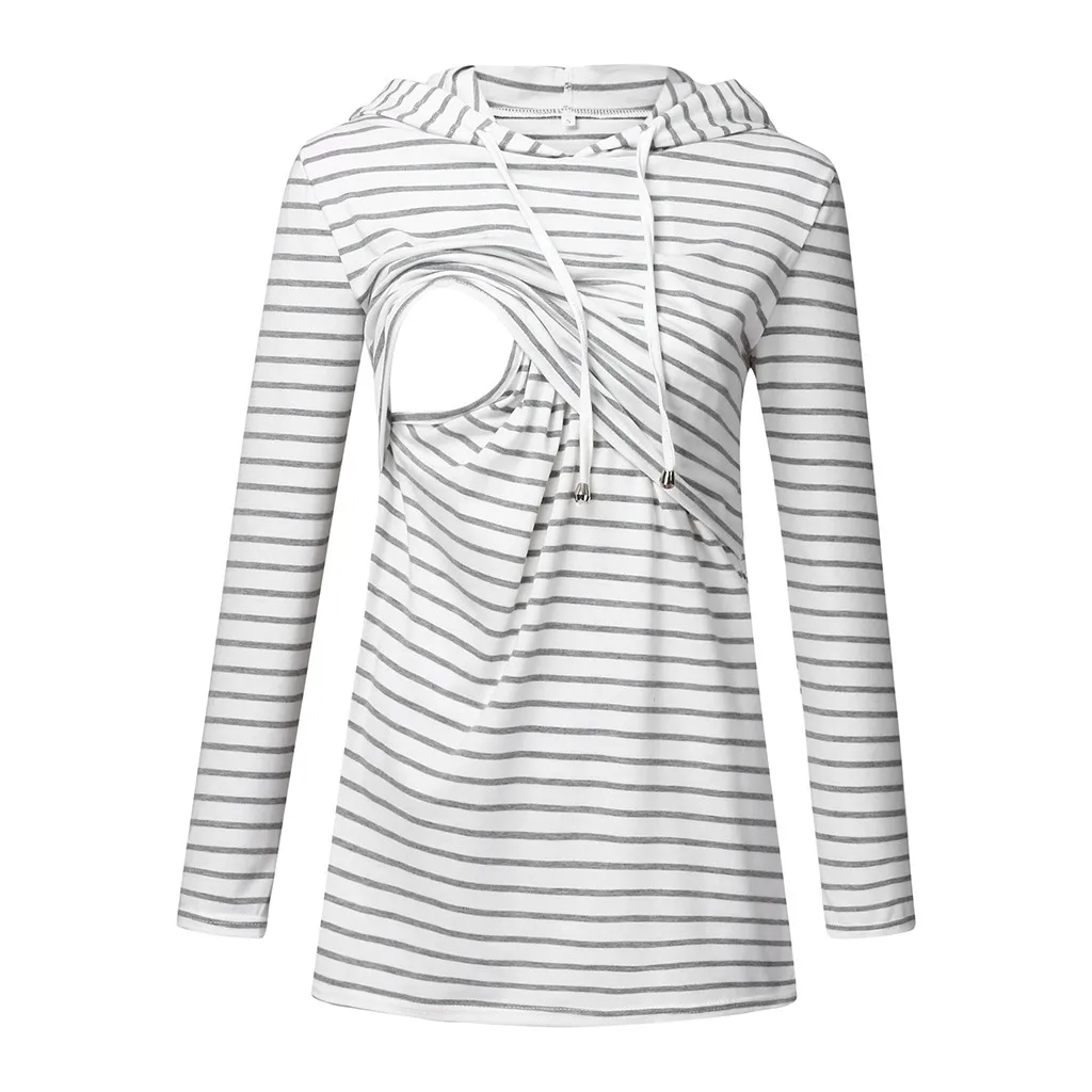 Women Maternity Long Sleeve Striped Hoodie Nursing Sweatshirts For Breastfeeding