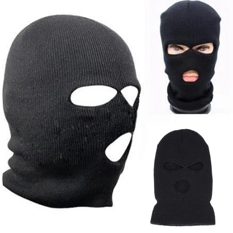 Отзывы о Мотоциклетная маска с 3 отверстиями Балаклава черная вязаная шапка защитная для