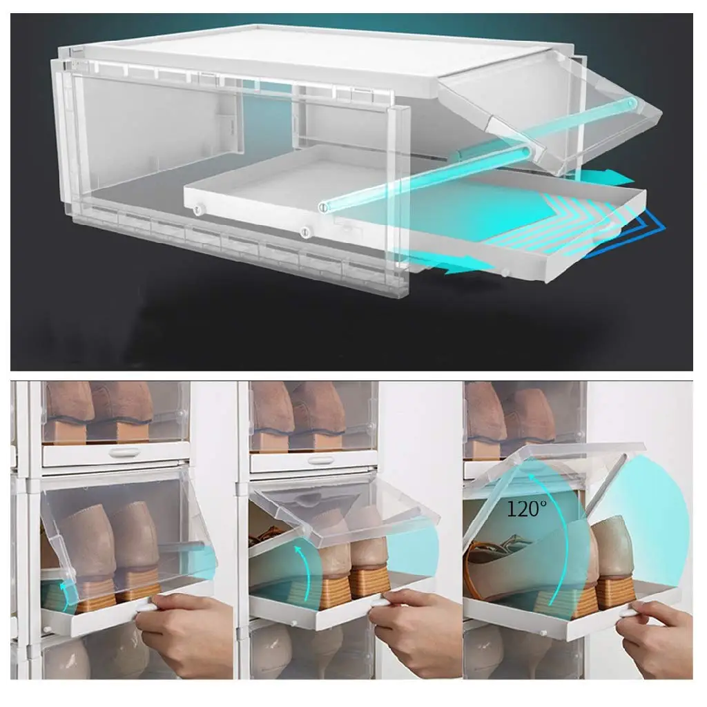 4. Прочные пластиковые коробки защищают обувь от пыли и влаги.