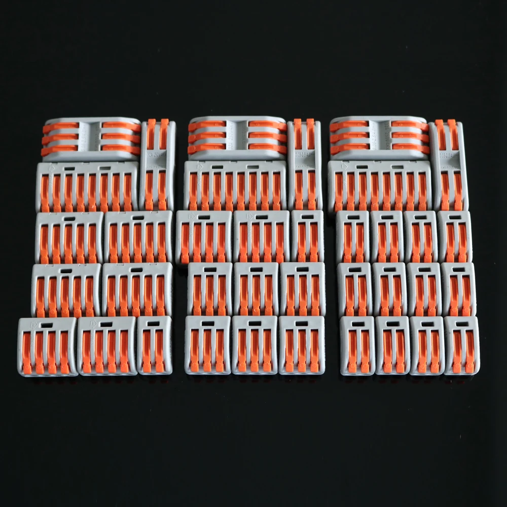 Название продукта: Универсальный соединитель проводаМодель: PT-2-2/3/4/5/8Номинальное напряжение: 400 ВНоминальное импульсное напряжение: 4КВМатериал изоляции: модифицированный нейлон (PA66)Материал контакта: Фосфорная медьСечение провода: 0,08 ~ 2.5mm2 (один жесткий провод), 0,08 ~ 4mm2 (мульти мягкий провод)Цвет: серый + оранжевыйНоминальный ток: 32AНоминальная мощность: 7 кВтКалибр: 28 ~ 12awgУпаковка:PT-3-3 коннектор x 3 шт.PT-2-2 коннектор x 3 шт.PT-218 коннектор x 3 шт.PT-215 коннектор x 4 шт.PT-214 коннектор x 4 шт.PT-213 коннектор x 6 шт.PT-212 коннектор x 14 шт.7 "Режущий инструмент для зачисткиX 1 шт.PP пластиковая коробка x 1 шт.