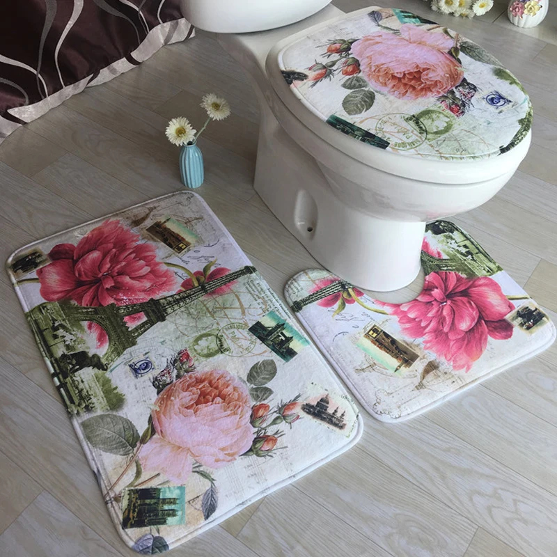 3 шт./компл. нескользящий коврик для ванной комнаты + крышка для унитаза + коврик для ванной