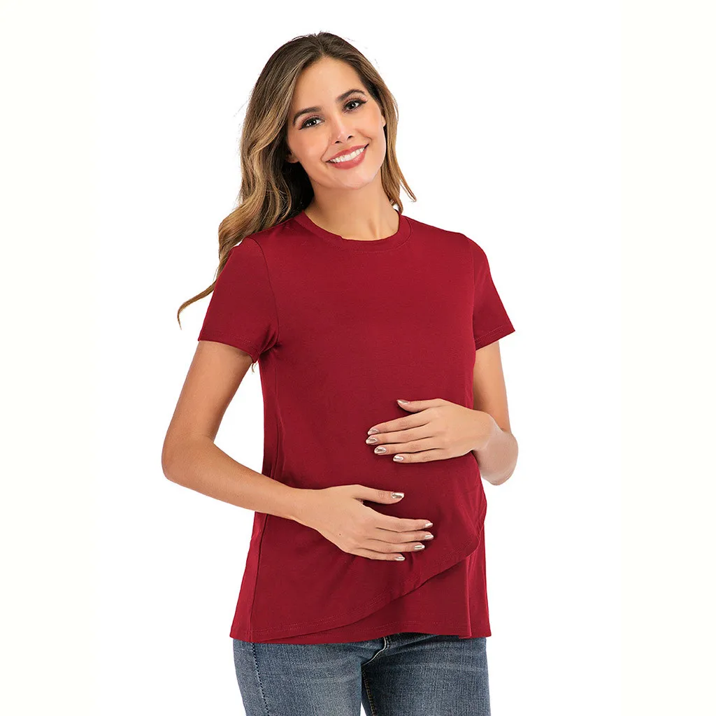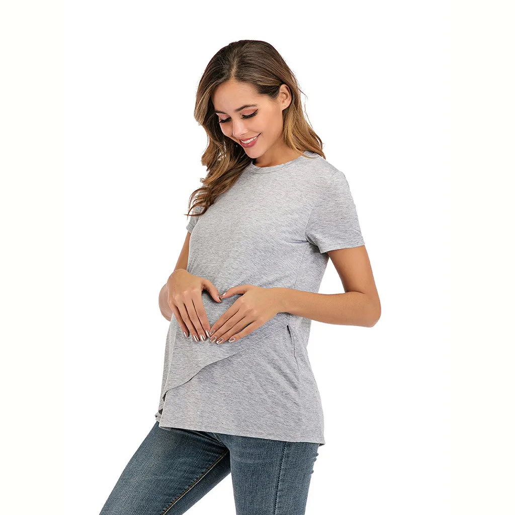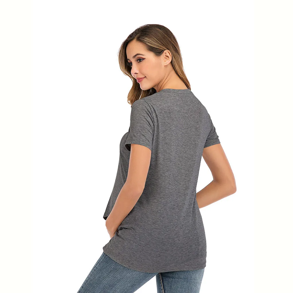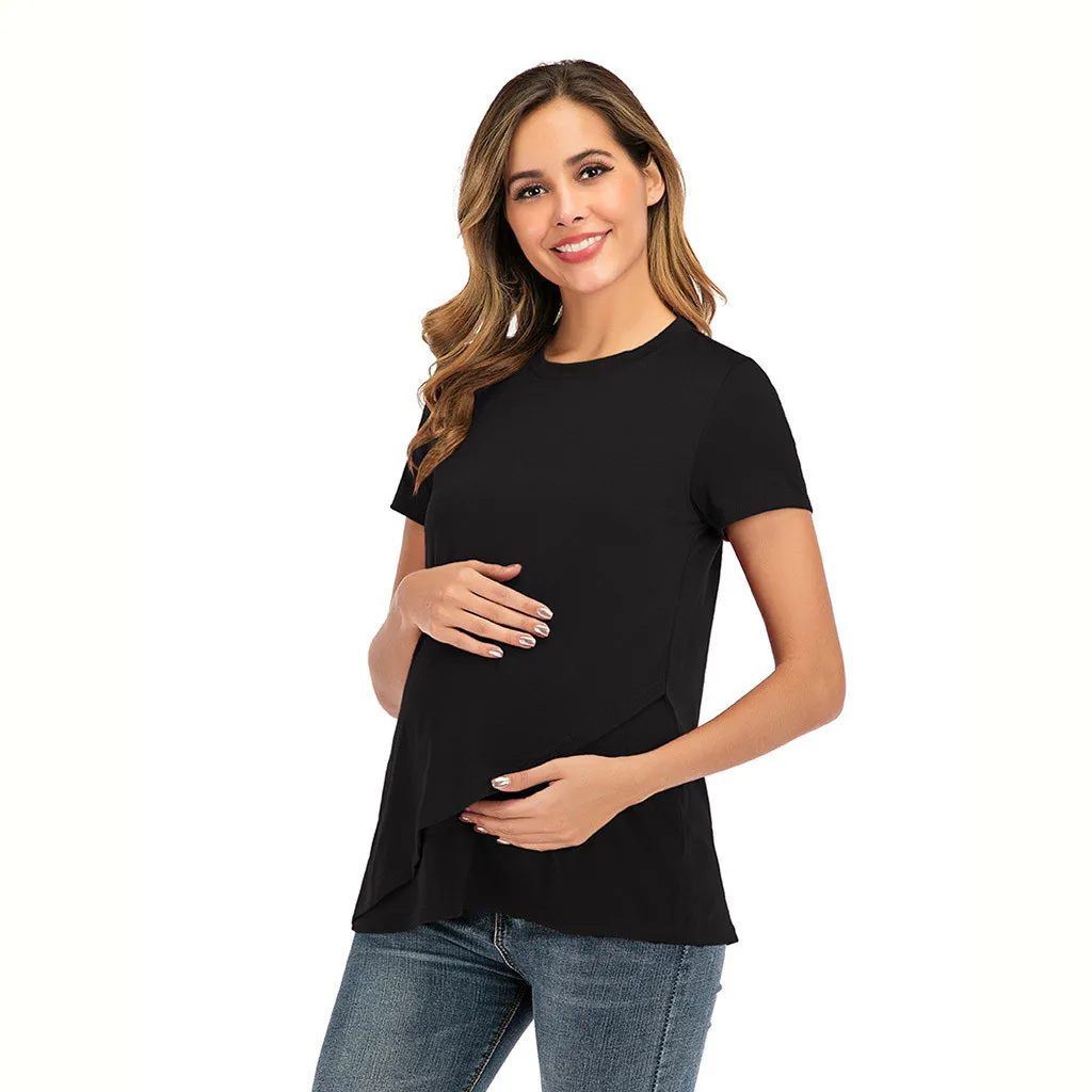 Женская блузка для кормления грудью с круглым вырезом и коротким рукавом