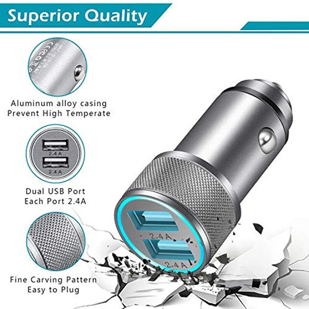 Универсальное металлическое зарядное устройство 12-24 В с двумя usb-портами 2.4A для телефона и планшета