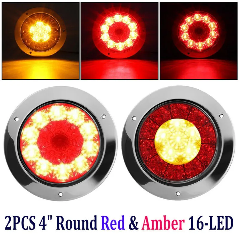 * 2X 4 "круглый красный/янтарный 16-LED грузовик прицеп стоп сигнала поворота задние фонари