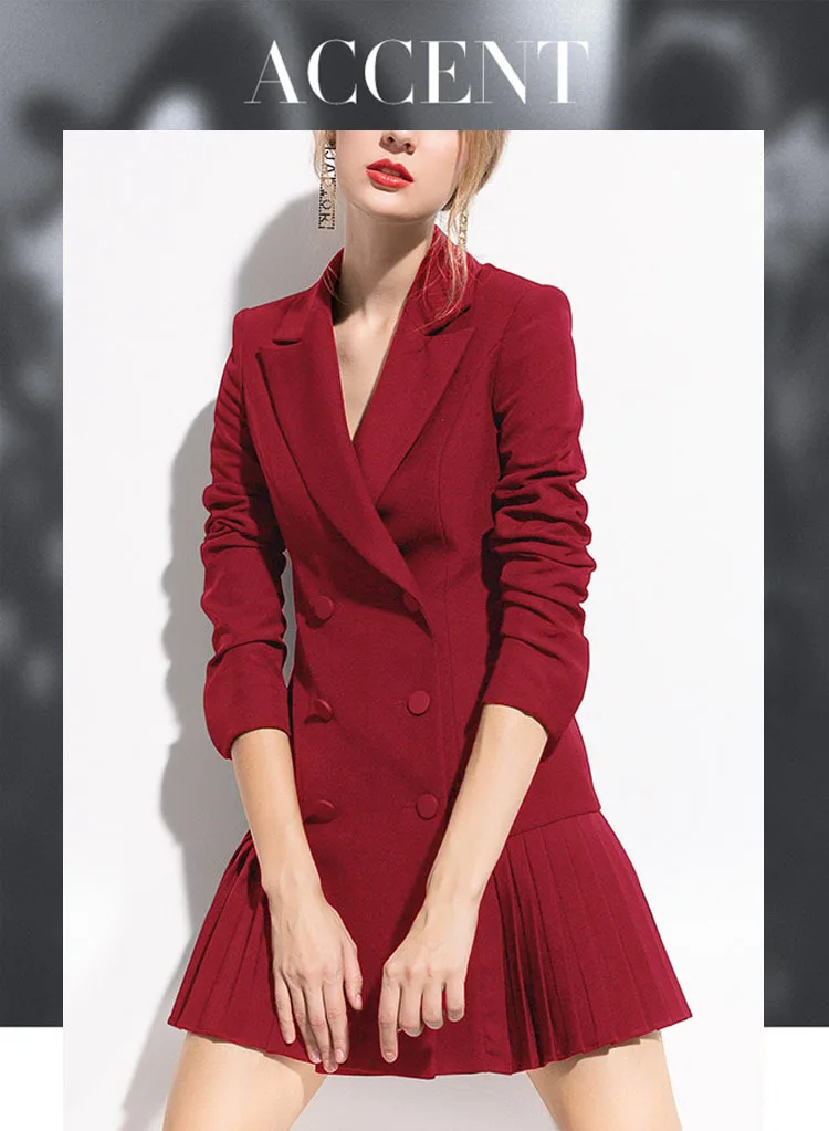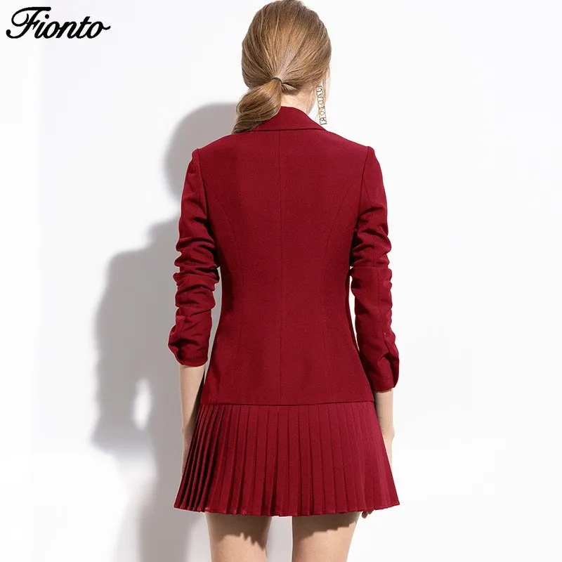 FIONTO, Осенний модный Блейзер, женское платье, костюмы, двойные пуговицы льва, шаль, воротник, длинный рукав, плиссированные блейзеры, платье, костюм, куртка