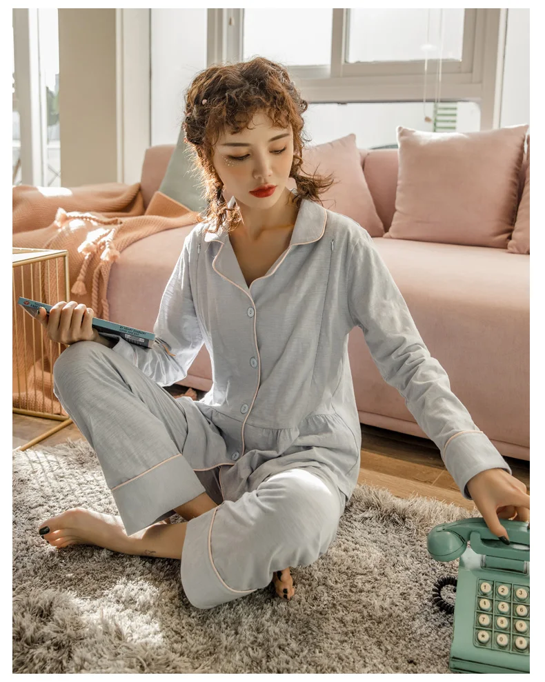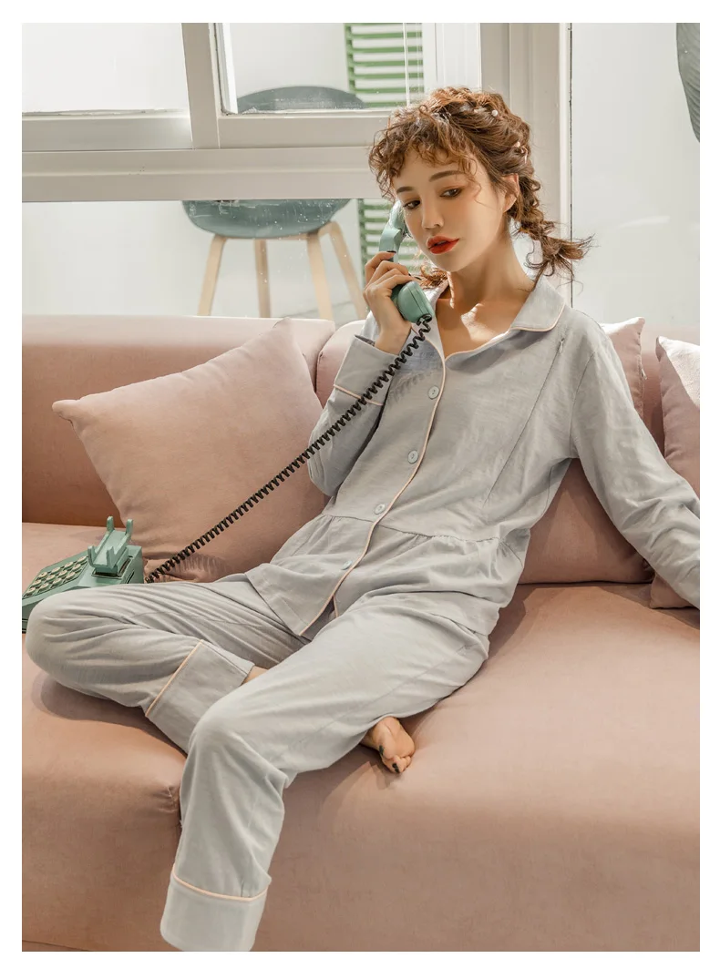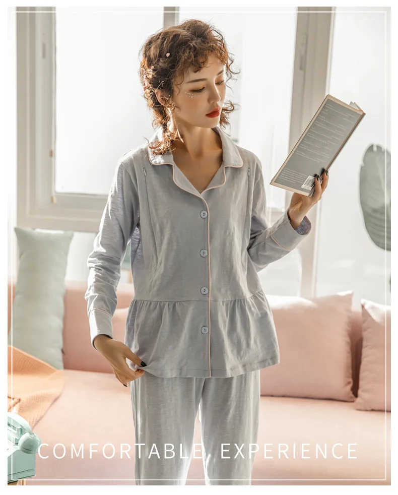 Осенне-зимний комплект одежды для беременных, пижама с v-образным вырезом, хлопковое теплое пальто + штаны для беременных женщин, ночная рубашка для грудного вскармливания