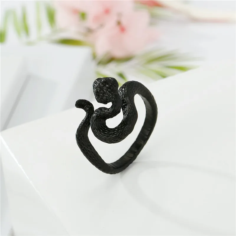 GEOMEE 1 шт., винтажное серебряное кольцо в виде змеи в стиле панк, Бесплатная змейка, для женщин и мужчин, готическое модное золотое, черное кольцо с изображением дракона и животных, с открытым пальцем, мужское ювелирное изделие