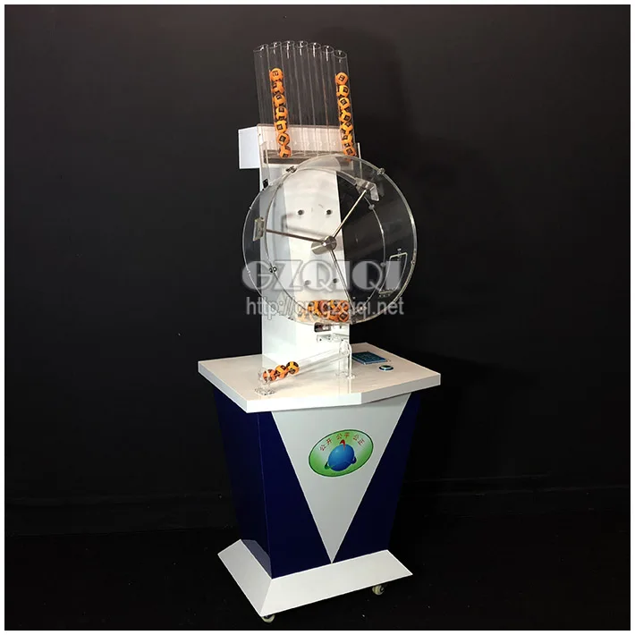 Размер машины: 66*56*185 см Стиль работы: механизм Емкость: 200 шариков для пинг-понга или 100 твердых шариков Диаметр шара: 40 мм Цвет: синий и белый. Эта лотерейная машина работает с помощью механизма, емкость составляет 200 мячей для пинг-понга или 100 твердых шариков. Мы Guangzhou QIQI Elecronic Manufacturing Co.,Ltd является профессиональным производителем лотерейной машины с 2005 года. У нас есть много лотерейных машин, работающих воздушным смешиванием или механизмом с различной мощностью. Изготовленные на заказ machiens очень приветствуются!