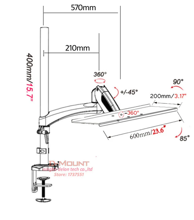Отзывы о DL-GM112KY Aluminum 27inch 0-8kg 360 rotate clamp air press gas strut spring keyboard mount with mouse Laptop desktop holder | Электроника