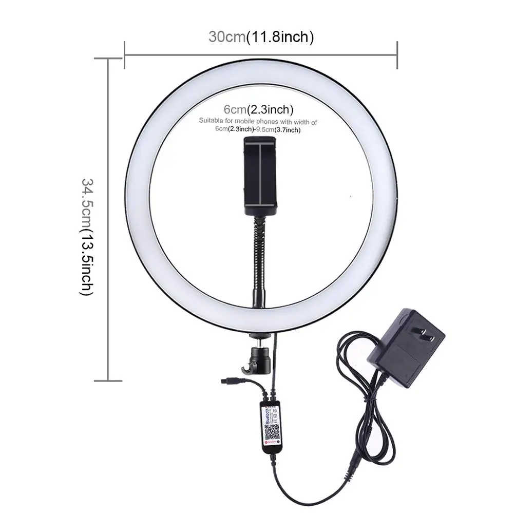 12 дюймовый светодиодный RGB кольцевой светильник вспышка заполняющая лампа с мобильный телефон клип