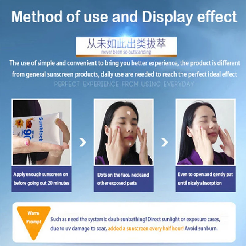 Warm natural sunscreen with natural plant essence and VC, can give the skin full of nutrients, and can protect the skin moisture, prevent sunburn, VE ingredients can enhance the role of sunscreen.