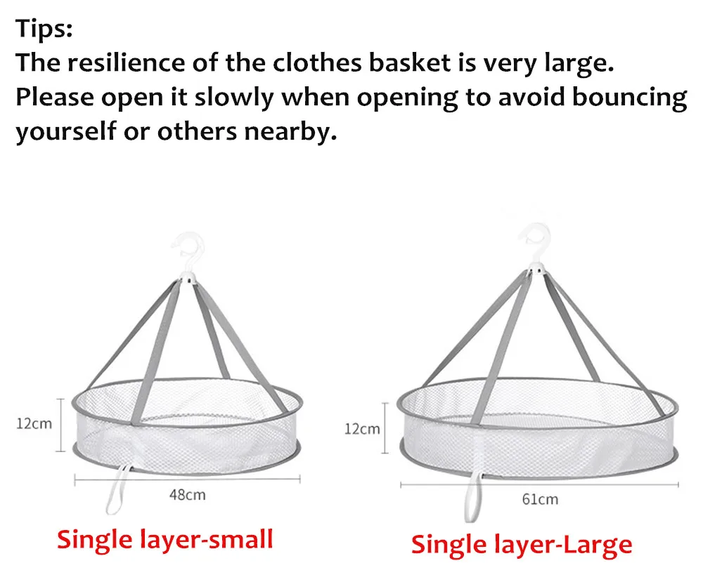 Товар: многофункциональная сетчатая корзина для одежды Материал: сетка из полиэстера + пружина из нержавеющей стали. Особенности: (1) конструкция сотовой сетки: шестиугольная структура прочная, стабильная и трудно деформируется, И имеет хорошую прочность и устойчивость. (2) полиэфирная сетка, сотовая сетка, грубая дышащая сетка, легко стекается. (3) ветрозащитный крючок, вращение на 360 °, ветрозащитный и нескользящий, большой диаметр круговой. Интерфейс, большая емкость, сильная гравитационная сила. (4) ветрозащитный крючок с пряжкой, крючок будет автоматически ловить одежду полюс при сушке, предотвращая ветер от дувания при сушке. (5) изысканный периферийный процесс подшивки, равномерная проводка, прочный. Прочный нейлоновый шнурок, прочный и прочный. (6) очень подходит для сушки всех видов светильник и светильник одежды (плоская сушка, анти-конфиденциальности), эффективно избежать навыпуск и деформации, вызванные сушки. (7) маленький размер: можно использовать для сушки нижнего белья, носков и других мелких предметов. Большой размер: Вы можете сушить свитера, футболки, анти-барабанные мешки и анти-деформации. Цвет: серый Размер: для размера s можно выбрать, как показано ниже.