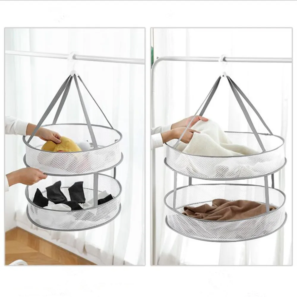 Серый и четыре размера круглая корзина для одежды сетки для сушки с крюком полиэфирная одежда плиточные сетчатые карманы для нижнего белья носки футболки